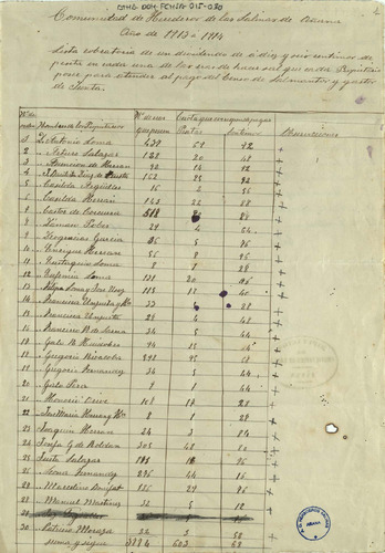 Lista cobratoria del repartimiento entre los miembros de la Comunidad de Herederos de las salinas de...