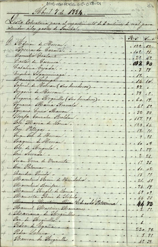 Lista cobratoria del repartimiento entre los Herederos de la Comunidad de las salinas de Añana, de los gastos ocasionados por las certificaciones sobre la redención del Diezmo y Señor