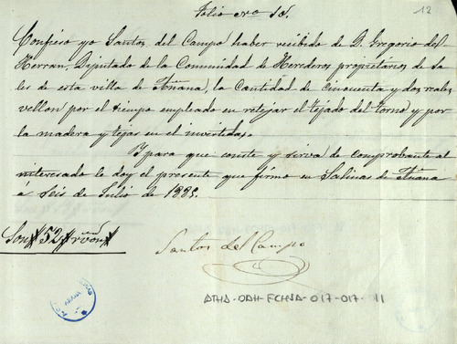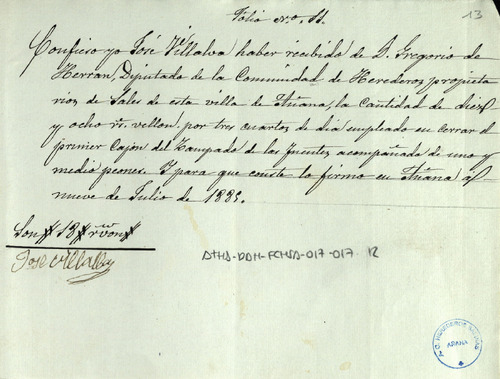 Cuentas de la Comunidad de Herederos de las salinas de Añana, desde el 11 de julio de 1884 hasta igual día de 1885, junto con sus recibos comprobatorios y listas cobratoria del repartimiento entre los Herederos, para el pago de los gastos de Juntas y de las cargas de tierra que cada uno de ellos ha llevado para sus granjas