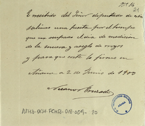 1902, julio, 31 a 1903, agosto, 14; Salinas de Añana (Álava)