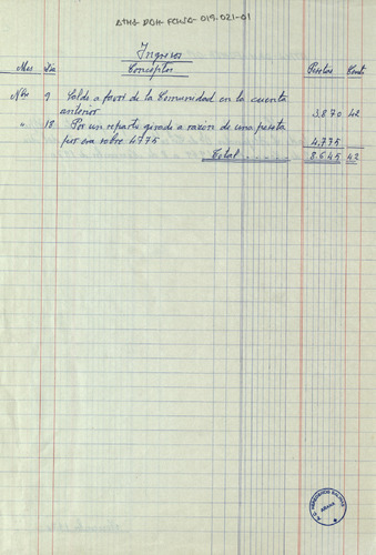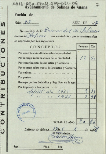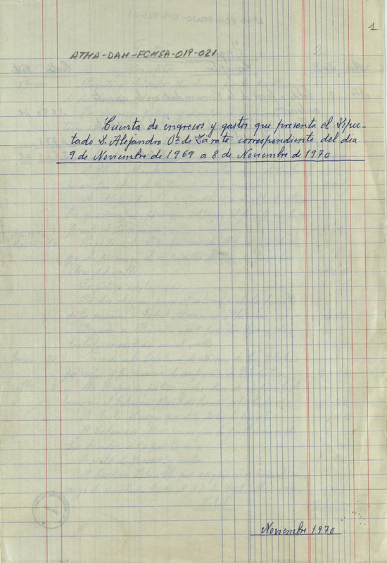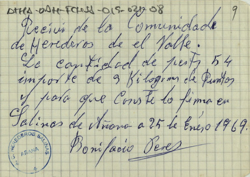 Cuentas de la Comunidad de Herederos de las salinas de Añana desde el 9 de noviembre de 1969 hasta el 8 del mismo mes de 1970, junto con sus recibos comprobatorios