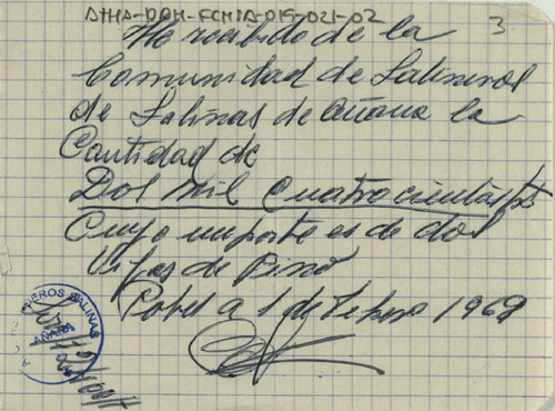 1968, febrero, 27 a 1970, noviembre, 8; Salinas de Añana (Álava)