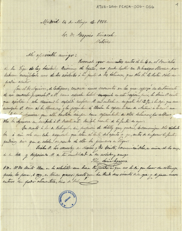 1912, mayo, 14; Madrid