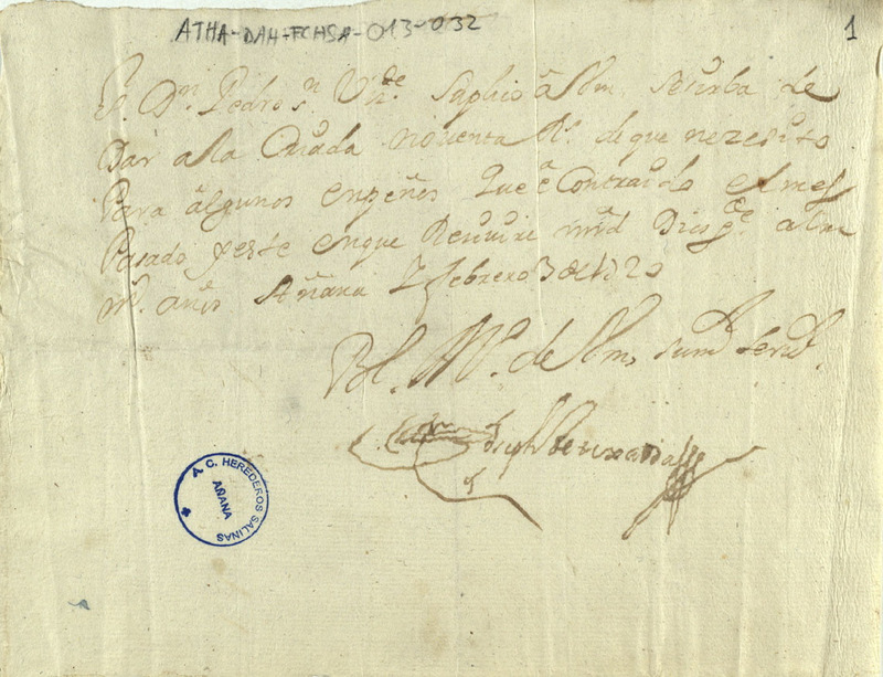 Carta de José de Tejada dirigida a Pedro San Vicente solicitando que entregara a su criada 90 reales y los cargara a su cuenta de la fábrica de la sal