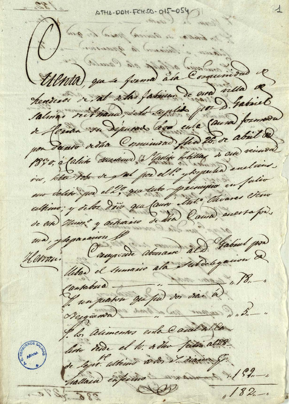 Cuenta de la Comunidad de Herederos de las salinas de Añana, de lo suplido por Gabriel Herrán en la causa formada a Calixto Martínez e Hipólito Tobillas, sobre robo de sal