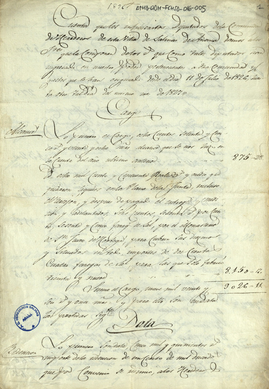 Cuenta de cargo y data de la Comunidad de Herederos de las salinas de Añana correspondiente a 1826 y 1827