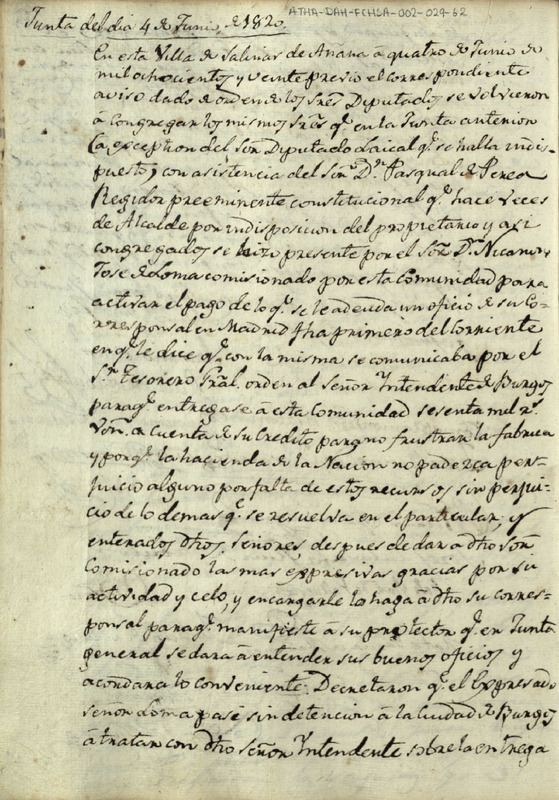 Acta de la Junta de la Comunidad de Herederos de las salinas de Añana de 4 de junio de 1820