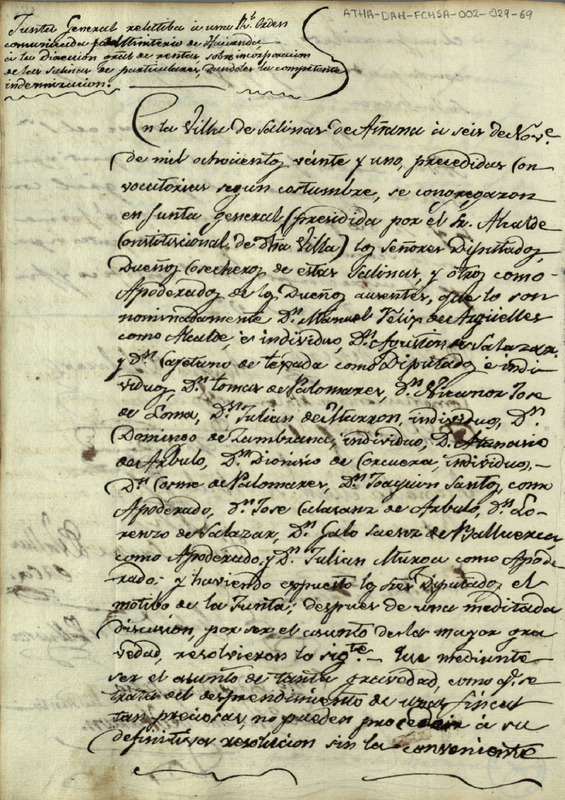 Acta de la Junta General de la Comunidad de Herederos de las salinas de Añana de 6 de noviembre de 1821