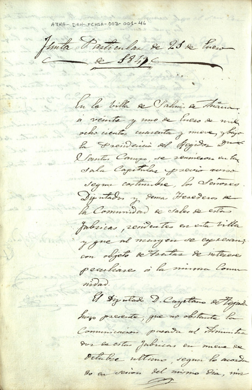 Acta de la Junta Particular de la Comunidad de Herederos de las salinas de Añana del 21 de enero de 1849