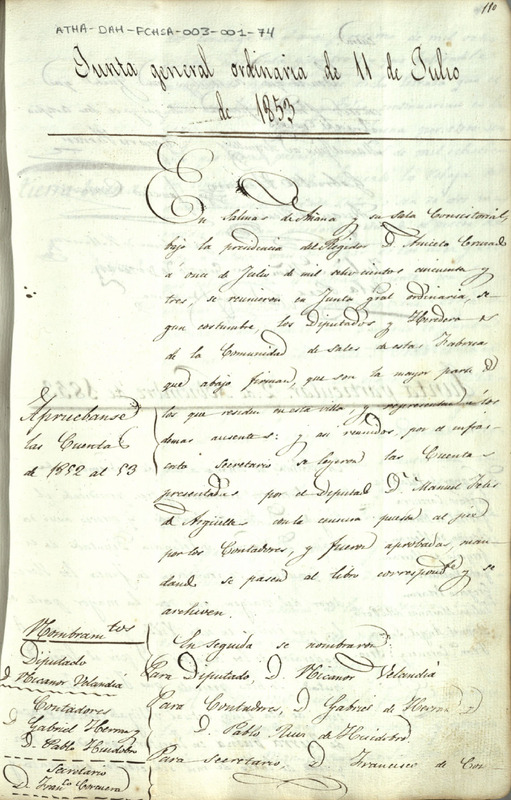 Acta de la Junta General ordinaria de la Comunidad de Herederos de las salinas de Añana del 11 de julio de 1853
