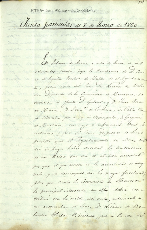 Acta de la Junta Particular de la Comunidad de Herederos de las salinas de Añana del 8 de junio de 1860