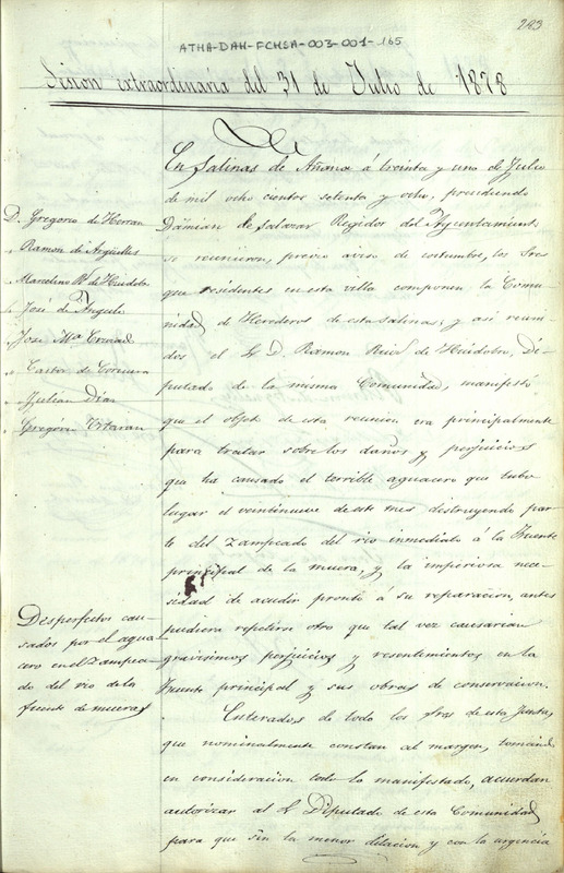 Acta de la Junta extraordinaria de la Comunidad de Herederos de las salinas de Añana del 31 de julio de 1878