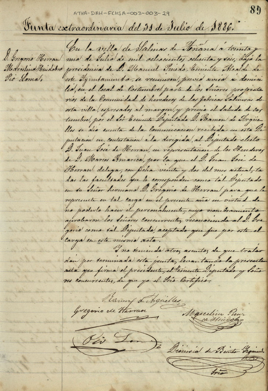 Acta de la Junta extraordinaria de la Comunidad de Herederos Propietarios de sales de Añana del 31 de julio de 1886