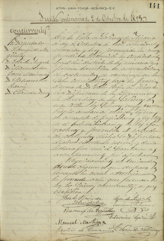Acta de la Junta ordinaria de la Comunidad de Herederos de las salinas de Añana del 2 de octubre de 1893
