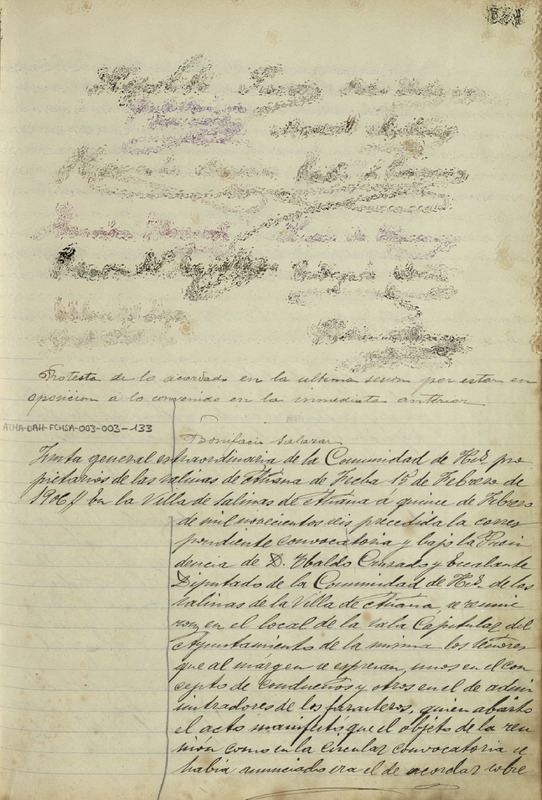 Acta de la Junta General extraordinaria de la Comunidad de Herederos Propietarios de las salinas de Añana del 15 de febrero de 1906