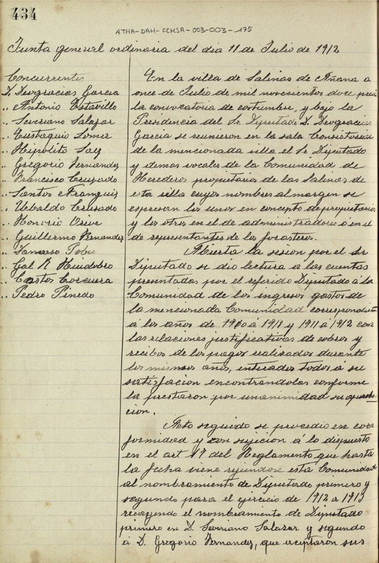 Acta de la Junta General ordinaria de la Comunidad de Herederos Propietarios de las salinas de Añana del 11 de julio de 1912