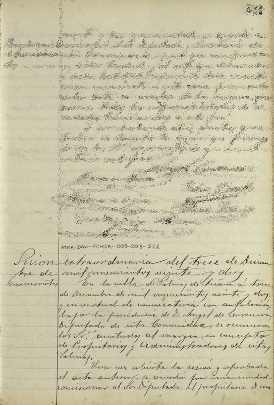 Acta de la sesión extraordinaria de la Comunidad de Herederos Propietarios de las salinas de Añana del 13 de diciembre 1922