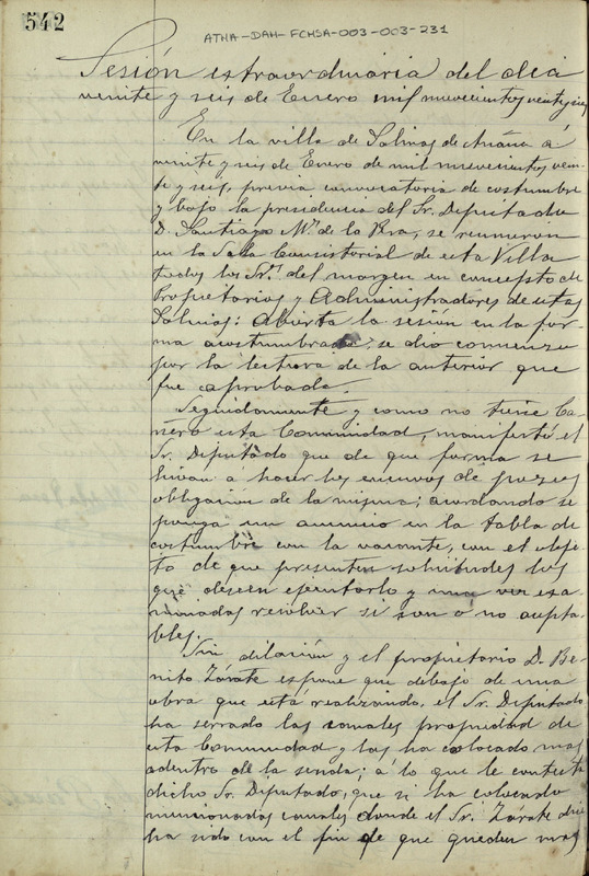 Acta de la sesión extraordinaria de la Comunidad de Herederos Propietarios de las salinas de Añana del 26 de enero de 1926