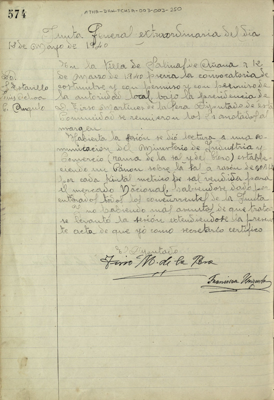 Acta de la Junta General extraordinaria de la Comunidad de Herederos Propietarios de las salinas de Añana del 12 de mayo de 1940