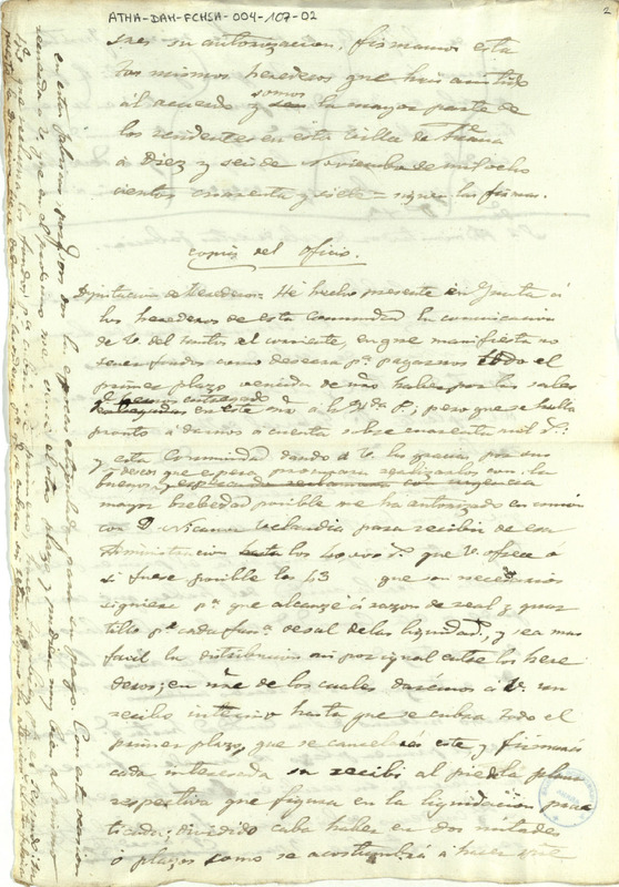 Borrador del oficio del Diputado de la Comunidad de Herederos de las salinas de Añana, pidiendo a la Administración de la Fábrica de Salinas de Añana 40.000 reales