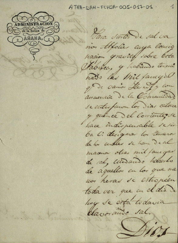 Componentes especiales del documento: 1.- Membrete: "Administración de la Salina de Añana"