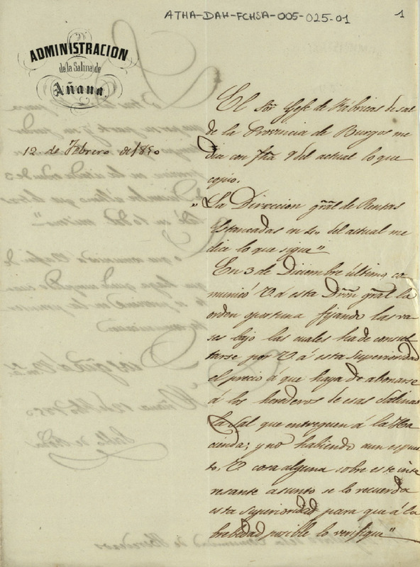 Componentes especiales del documento: 1.- Membrete: "Administración de la Salina de Añana"