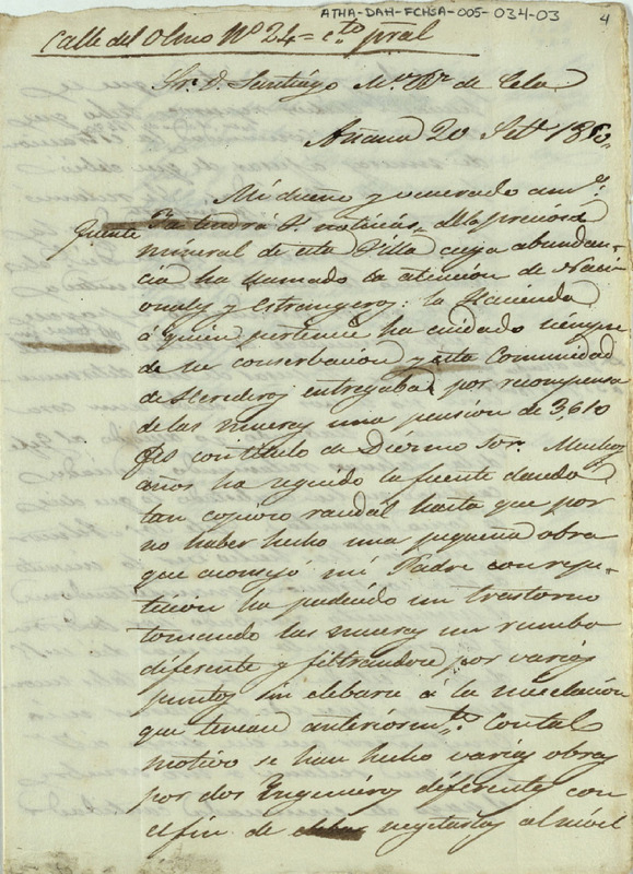 Borrador de una carta del Diputado de la Comunidad de Herederos de las salinas de Añana dirigida a la Santiago María Ruiz de Cela comisionado de la expresada Comunidad, para que reclamara, en su nombre, el pago de los gastos que tuvo que hacer la citada Comunidad para sacar la muera de la fuente mineral