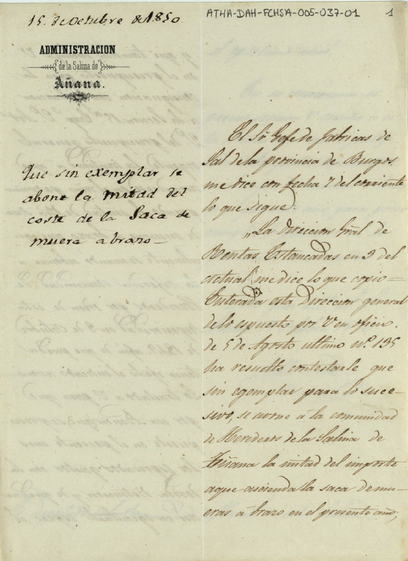 1850, octubre, 15; Salinas de Añana (Álava)