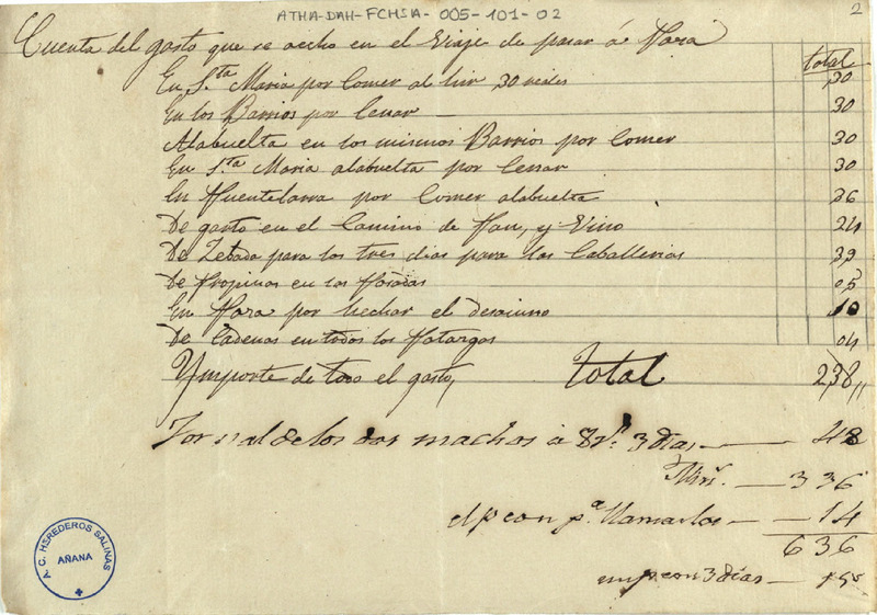 Borrador de la cuenta de los gastos en los que se había incurrido en el viaje a Poza de la Sal, para el cobro de las sales de 1856
