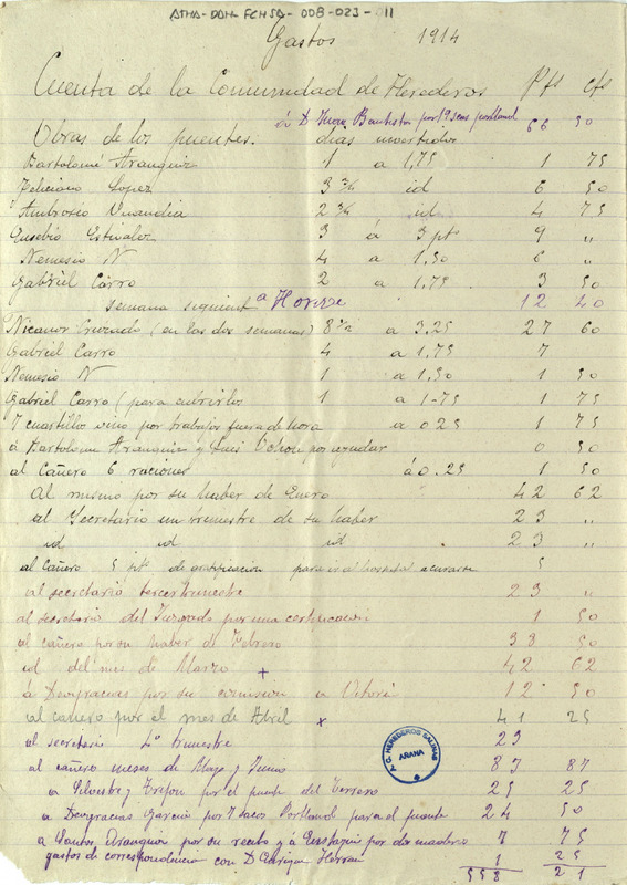 Copia simple de la cuenta de los gastos e ingresos de la Comunidad de Herederos de las salinas de Añana, durante el año 1914
