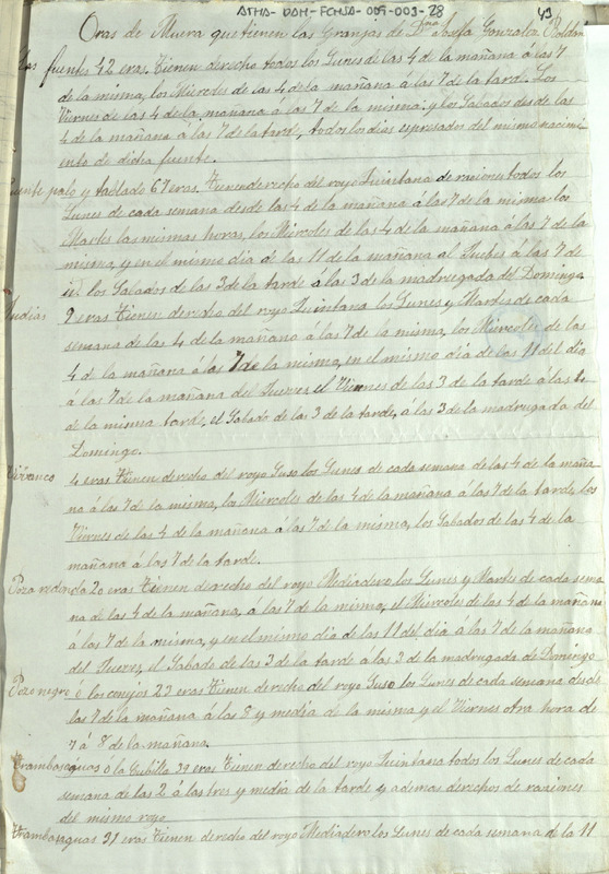 Copia simple de una relación de las mueras a las que tenían derecho las granjas de hacer sal de Josefa González Roldán, en el Valle Salado de Salinas de Añana