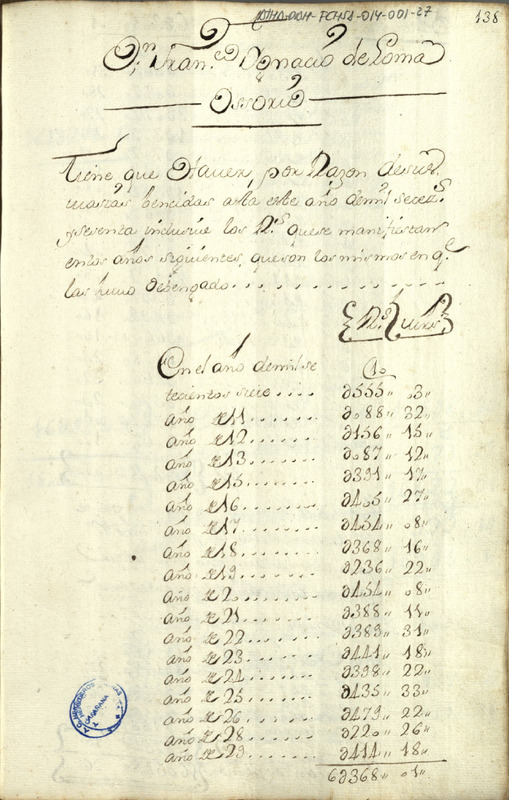 Cuenta de los fondos resultantes por la entrega de las masías de sal a la Hacienda pública desde el año 1707 hasta el año 1772, por parte de Francisco Ignacio de Loma Osorio
