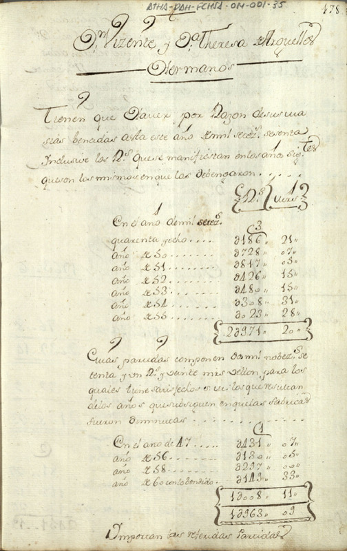Cuenta de los fondos resultantes por la entrega de las masías de sal a la Hacienda pública por parte de los hermanos Teresa y Vicente de Argüelles, como miembros de la Comunidad de Herederos de las salinas de Añana, desde el año 1748 hasta el año 1772