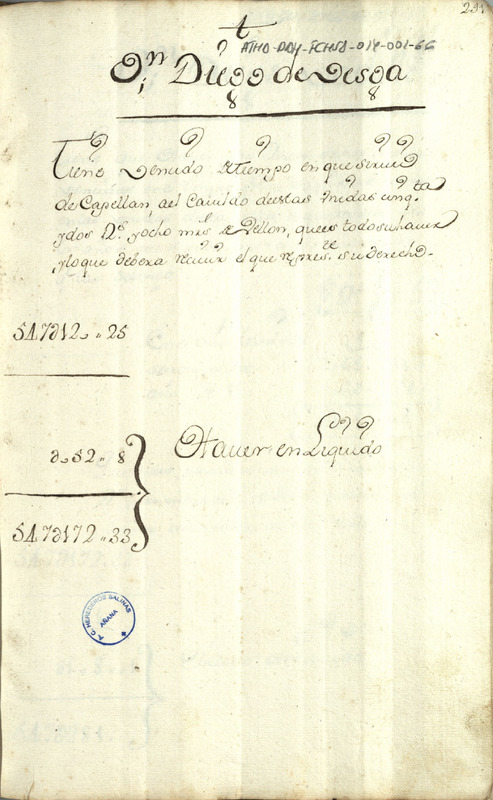 Cuenta de los fondos resultantes por la entrega de las masías de sal a la Hacienda pública por parte de Diego de Besga, durante el tiempo que sirvió como capellán del cabildo de las iglesias unidas de Salinas de Añana