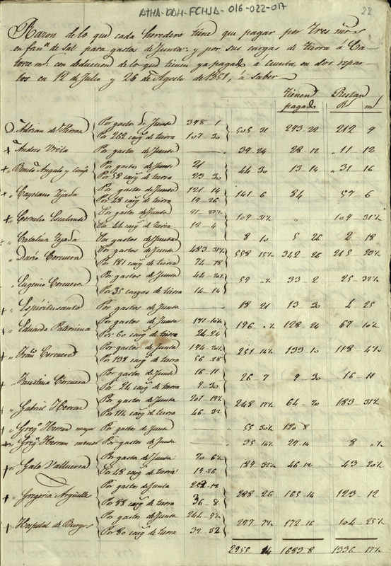 Lista del repartimiento entre los miembros de la Comunidad de Herederos de las salinas de Añana por gastos de junta y cargas de tierra buena de 1851