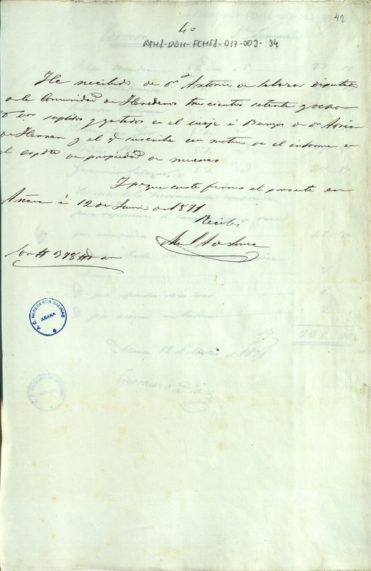 Recibo de 378 reales de vellón otorgado por Manuel Ángel Loma, en favor de Antonio Salazar como Diputado de la Comunidad de Herederos de las salinas de Añana, por los gastos realizados por él mismo por Adrián de Herrán, en el viaje a Burgos con motivo del informe en el expediente de propiedad de mueras