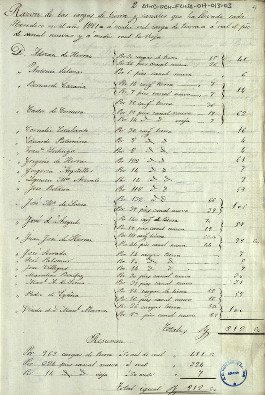 Cuenta de los gastos realizados por varios Herederos de las salinas de Añana en tierra buena y canales en 1881