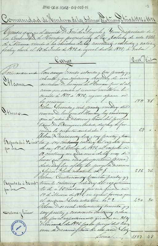 Cuenta de cargo y data de la Comunidad de Herederos de las salinas de Añana desde el 1 de julio de 1896 hasta el 30 de junio de 1897