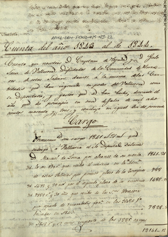 Cuenta dada por Cayetano de Tejada y Galo Sáenz de Valluerca, como Diputados de la Comunidad de Herederos de las salinas de Añana, comprendida desde el 11 de julio de 1843 hasta el 11 de julio de 1844