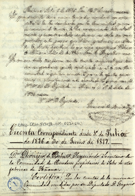 Cuenta dada por el Diputado de la Comunidad de Herederos de las salinas de Añana, comprendida desde el 1 de julio de 1886 hasta el 30 de junio de 1887
