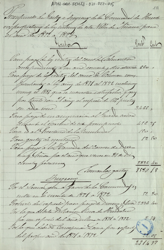 Presupuesto de ingresos y gastos de la Comunidad de Herederos de las salinas de Añana del año económico 1892-93