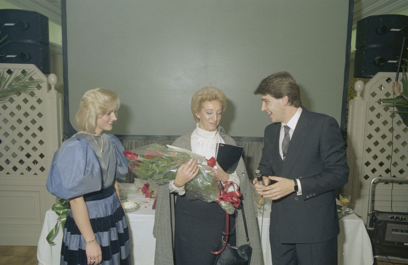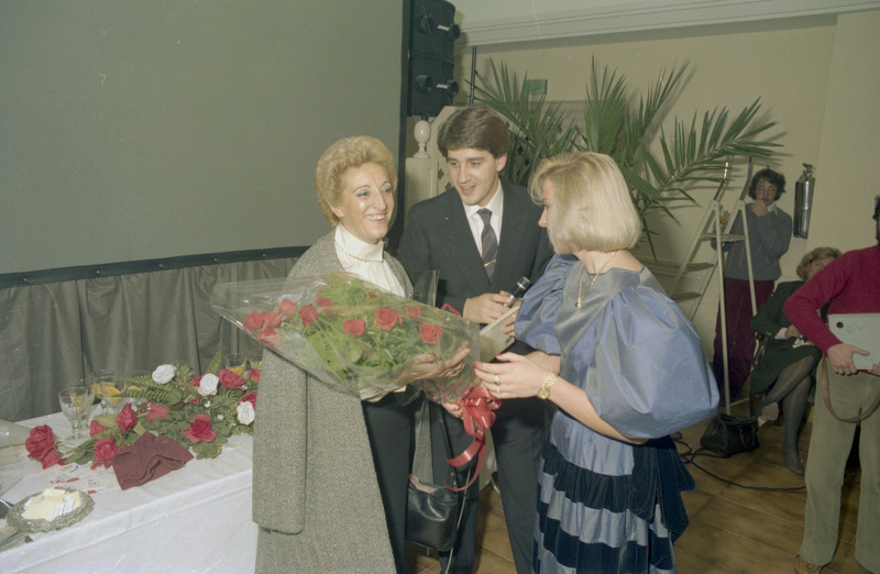 Exposición de la joyería Jolben de Vitoria-Gasteiz con sorteo incluído, en 1984. Aparece el joyero José Luis Bengoechea.