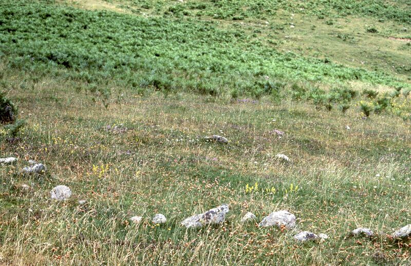 Dos círculos de piedras entre el cuartel de carabineros y el conjunto principasl, en Guarrinza