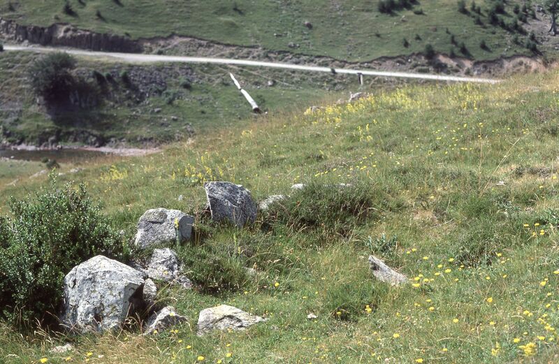 Círculo de piedras sobre las ruinas del cuartel de carabineros, en Guarrinza