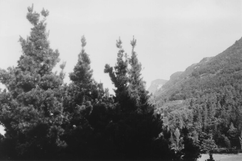 Vista parcial del paisaje de la zona con un conjunto de pinos en primer plano de la imagen;