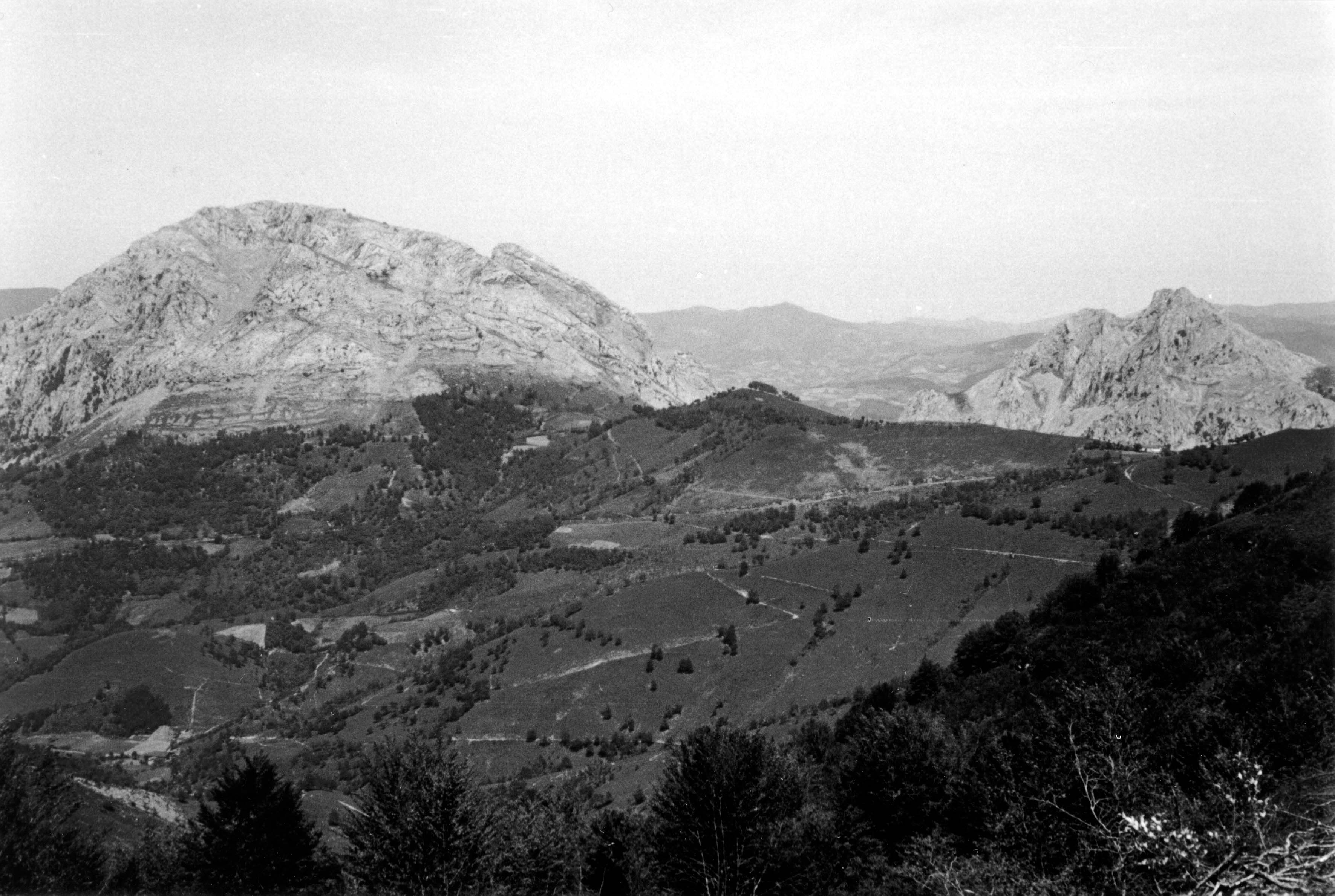 Paisaje de un valle con dos macizos montañosos